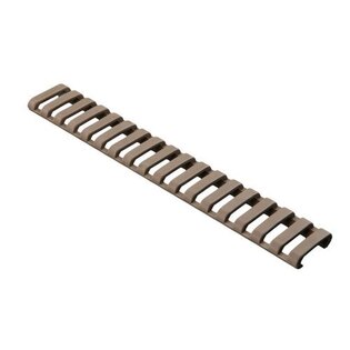 The RIS Ladder Rail Panel Cover is manufactured for Magpul by Falcon Industries. The cover is ultra-light and designed to cover 1913 Picatinny or RIS rails. It improves the weapon's ergonomics and provides a safer grip. The installation is quick and straightforward, without the need for any tools, and the cover can be easily cut to the desired length.