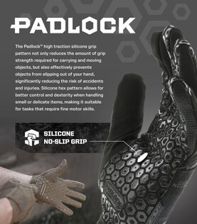 The Box Cutter gloves are designed specifically for handling boxes, carrying heavy loads and working in a warehouse. The silicon Padlock grip on the palm ensures confidence when lifting and carrying, and it also reduces the effort needed with each grip.