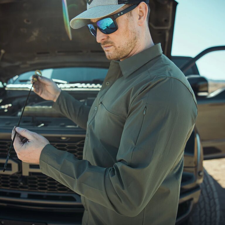 The Expedition Long-Sleeve Shirt by Vertx® is designed for active movement and demanding outdoor use. Its athletic fit with gusseted underarm and back panels allows unrestricted mobility, while breathable stretch fabric helps manage moisture and maintain comfort during long days in changing conditions.