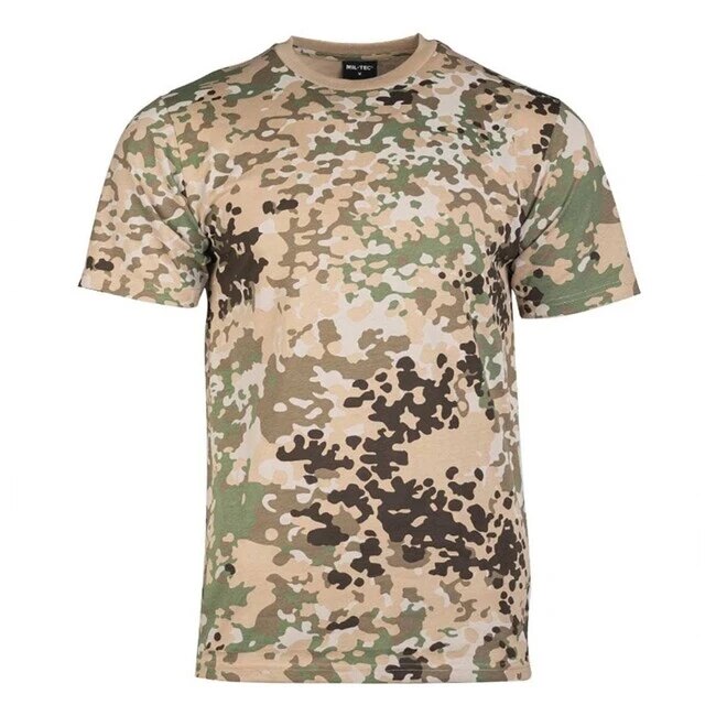 The German Mil-Tec Aridfleck t-shirt brings the perfect combination of functionality and style. Its original Aridfleck military pattern gives the outfit a unique touch of authenticity. An embroidered German flag on the back underlines its manufacturing origin and connection to tradition.