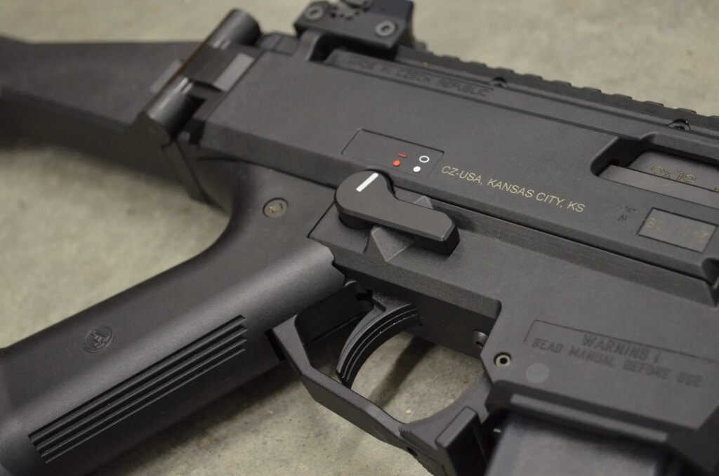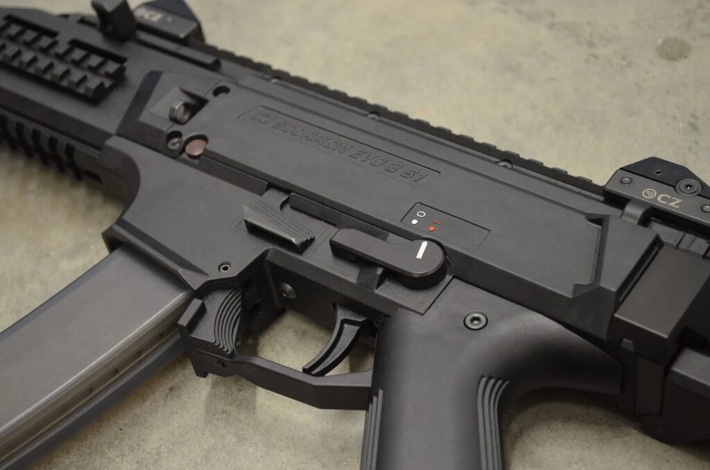 Mini AK style safety for CZ Scorpion Evo — shorter lever, clean operation, and clear indication mark. Suitable for both the left and right sides of the weapon, it's installed as a drop-in replacement and operated with a natural finger movement. Precision machining and durable surface finish ensure long-term function even with frequent use. Laser marking clearly shows the position. Recommended installation by a gunsmith.
