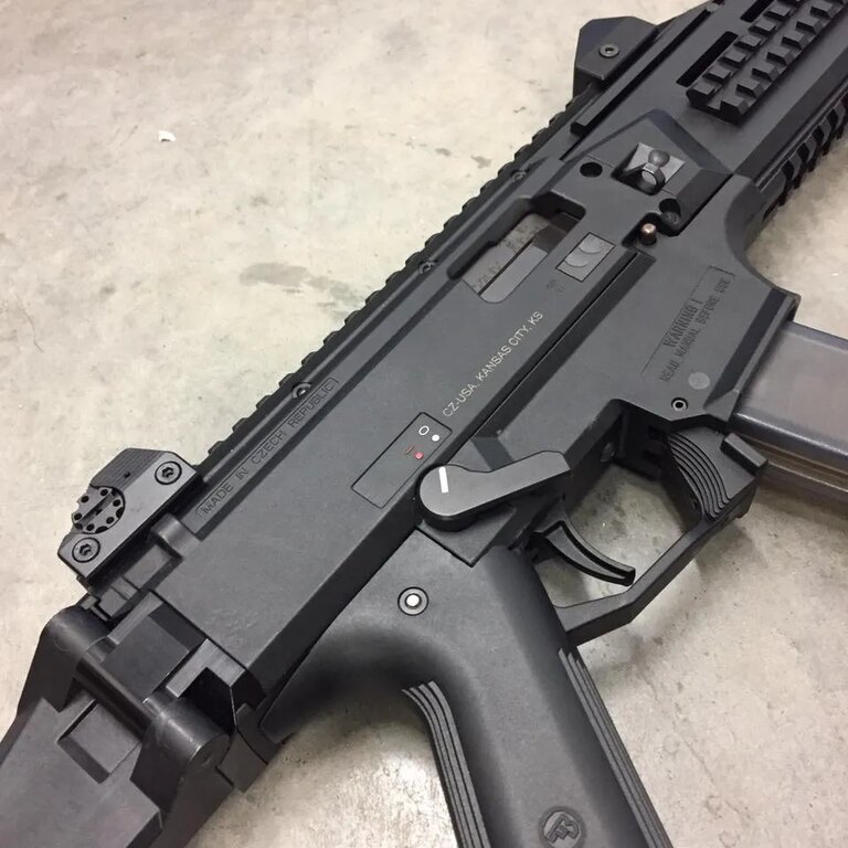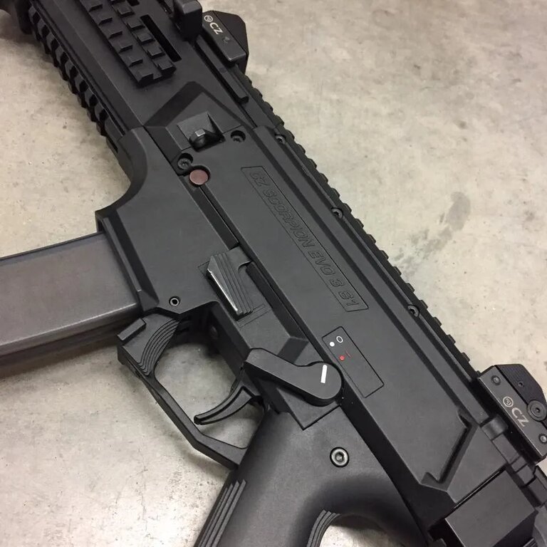 Designed for CZ Scorpion EVO3 S1 — works on both right and left sides and fits with a range of folding stocks including the original design. The shorter lever design minimizes the risk of collisions with other controls. It's a drop-in replacement, requiring no major modifications to the frame. Thanks to the thoughtful shape, control remains ergonomic even with additional accessories on the weapon. If you have specific aftermarket modifications, we recommend consulting with a gunsmith.