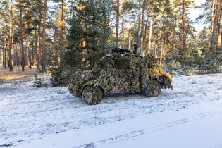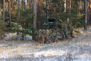 The camouflage is based on the conCAMO pattern, which uses layered shapes and color transitions to disrupt the vehicle’s outline. This visual fragmentation makes it more difficult for both the human eye and optical sensors to recognize distinct shapes. The vehicle integrates naturally into vegetation, terrain features, or urban edges.