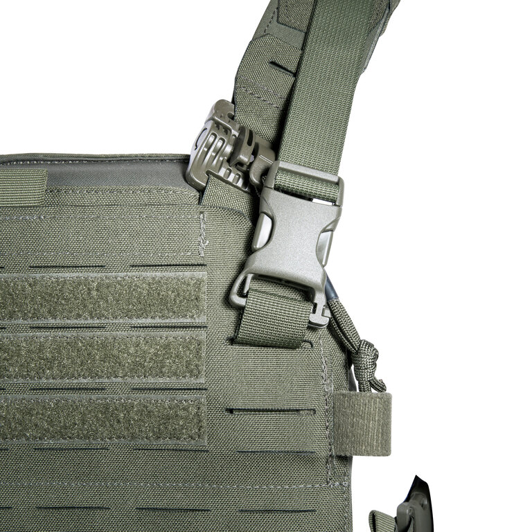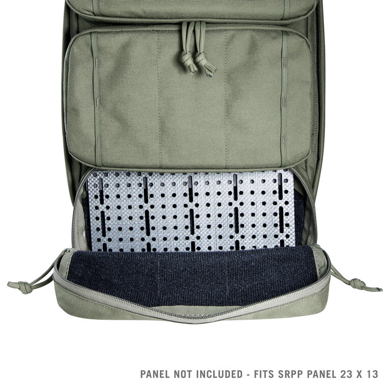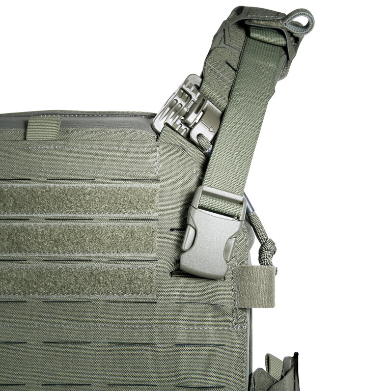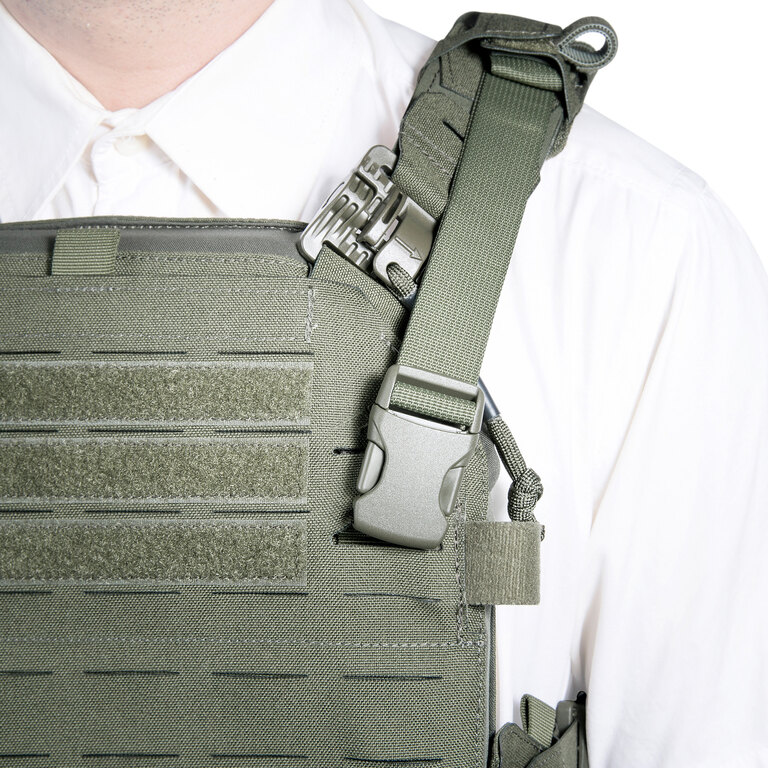An internal compartment allows insertion of a ballistic plate, enabling additional back protection. The configuration can be adapted based on operational requirements, from lightweight setups to enhanced protection.
