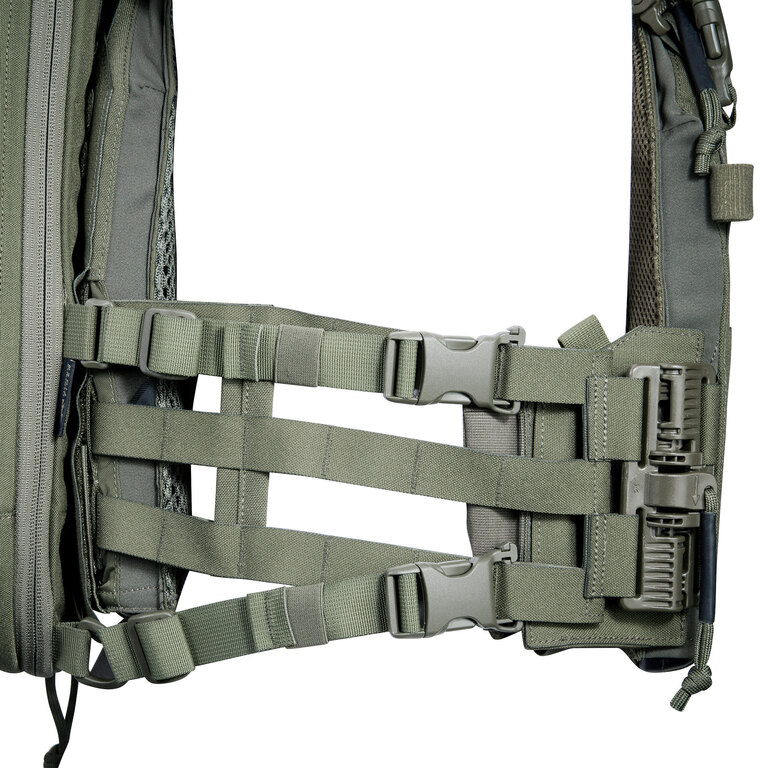The Tasmanian Tiger Modular Chest Rig Backpack is designed as a rear-mounted extension for chest rigs and plate carriers, adding storage capacity without the need for a standalone backpack. It integrates directly with the load-bearing system, keeping equipment organized, balanced, and immediately accessible. The design also supports the insertion of a ballistic plate for additional rear protection. The chest rig is not included.