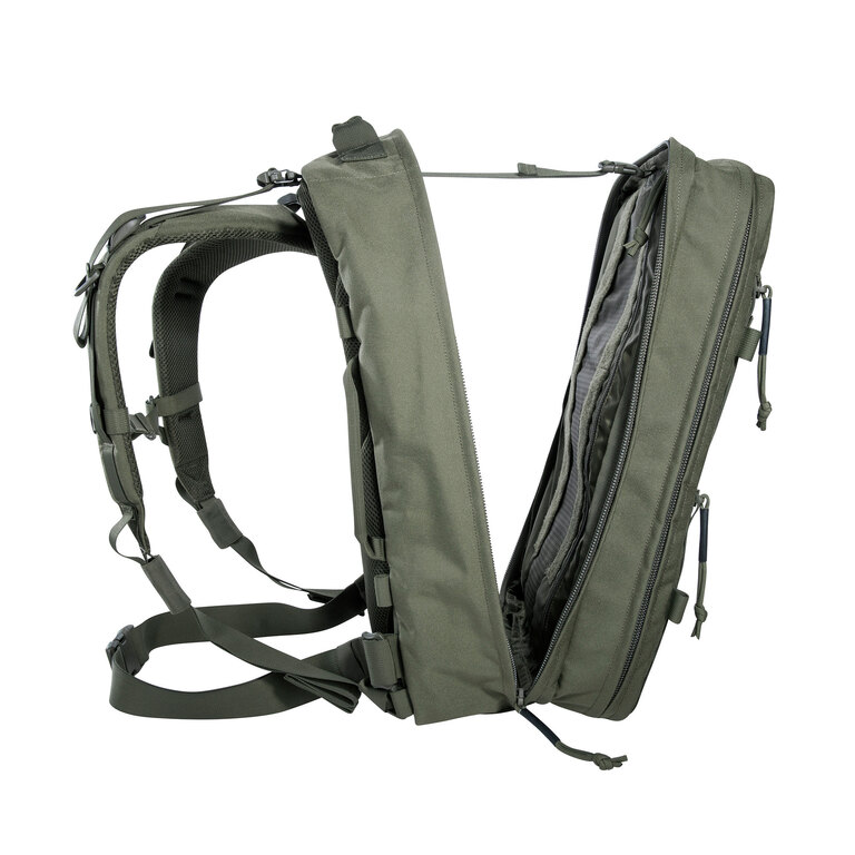 The Tasmanian Tiger Modular Grab Backpack 30 offers two spacious, fully opening compartments and a modular internal layout for organized storage of equipment, documents, and smaller items. MOLLE webbing allows for additional gear attachment, while the adjustable carrying system with removable components ensures comfort during transport and flexibility in use.