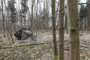 The Camo-Net UL can be used to conceal equipment, supplies, or to create improvised observation or hide positions. It can be easily suspended between trees, draped over gear, or integrated into shelter setups. The camouflage effect can be further enhanced by adding natural vegetation from the surrounding environment.