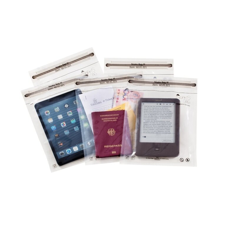 Secure your valuables during situations such as cloud-bursts or scuba diving. You can store inside mobile phone, documents, electronics, wallet etc. Simply items that must remain dry at all costs. Waterproof according to IPX 8. That means you can easily dive with them to a depth of ten meters for two hours. Thanks to the materials used they are extremely durable. They are also not harmful to health so you can store food in them.