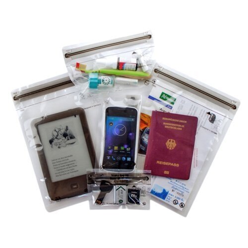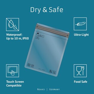 Secure your valuables against water or moisture. You can store inside mobile phone, documents, electronics, wallet etc. Simply items that must remain dry at all costs. Waterproof according to IPX 8. That means you can easily dive with them to a depth of ten meters for two hours. Thanks to the materials used they are extremely durable. They are also not harmful to health so you can store food in them. The set contains 1 x XS bag, 2 x S size bag and 2 x M size bags.