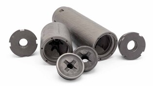 The suppressor is produced using metal additive manufacturing (laser sintering). This allows the creation of complex internal geometries without welded joints, resulting in a monolithic structure optimized for durability and gas flow management.