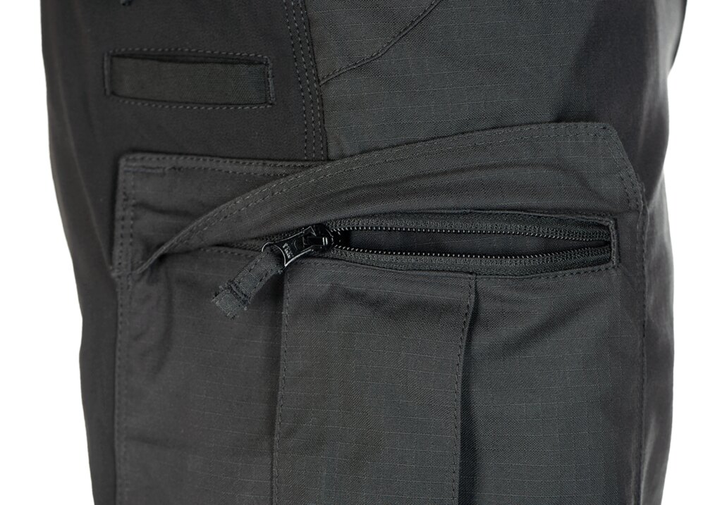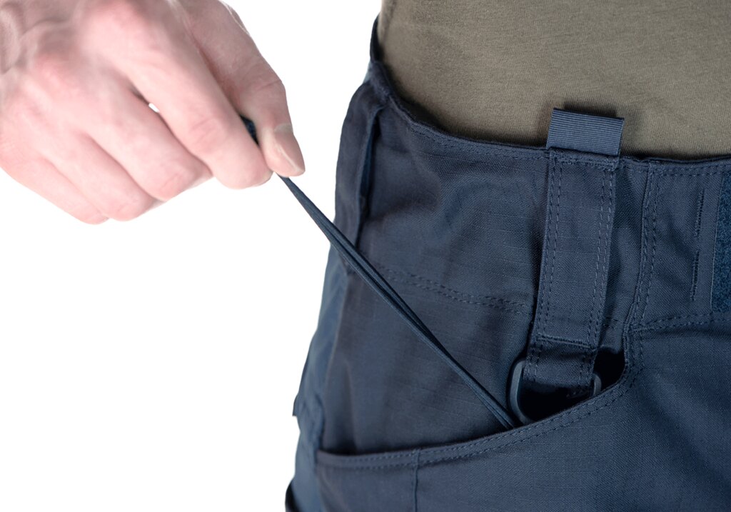 The trousers have 2 deep hand pockets with an upper open entrance from the side (for keys, handkerchief, folding knife etc). Both pockets have a second layer of fabric lined on the edges for greater durability when attaching a knife clip or other equipment. On the front of the trousers, on the belt loops, there are 2 "D" rings (1 on each side) for hanging keys and small items. The trousers have 2 thigh pockets with a zippered upper entrance covered by a flap. Inside the thigh pockets we find a small pocket for magazine. The storage space of the trousers has also been expanded with compartments with an upper open entrance, which are primarily intended for storing a magazine with the possibility of very quick access. The pocket is deep enough so you don't have to worry about the magazine falling out, even when moving faster. This tunnel pocket can also be used, for example, to store a hat, beret etc.