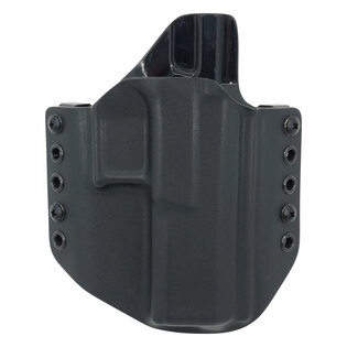 Outside the waistband holsters of Kydex 2 mm thickness fit perfectly on your chosen weapon, as they are pressed at high pressure and precisely specified temperatures. The casing has precise detail forpresses, that go into the rounded and smooth hand cut edges.The material is resistant to the action of chemical compounds, freeze-resistant and can not be damaged by water. Other pluses are low flammability and abrasion resistance. These features are overcome by classic leather, textile, or plastic cases.