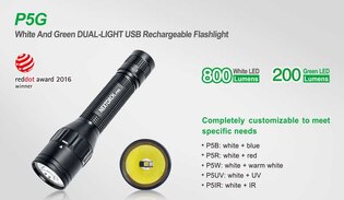 The P5G Dual-Light Flashlight Set 800 lm NexTorch is a compact light for all those looking for a reliable light source. The light has a dual light (white/green), making it ideal for hunting activities. Green light is especially suitable for hunting activities. Many animals do not see green light. It gives you a chance to get closer to the game without being noticed.