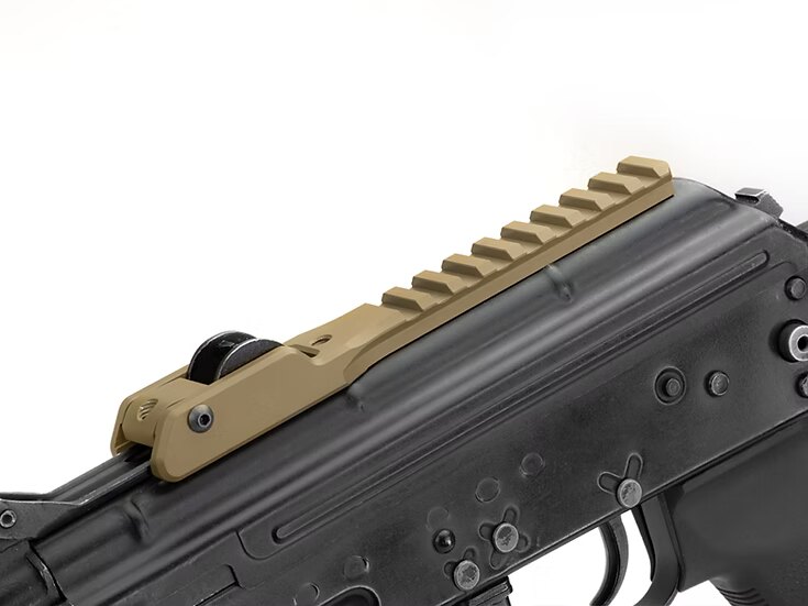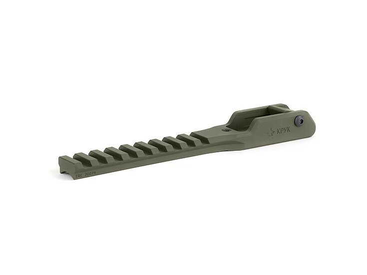 CRC 2U079 Picatinny Mount for AKS-74U equips your AKS-74U with modern optics quickly and securely. The mount installs on the AKS-74U receiver (dust) cover with no permanent modifications, preserves the iron-sight sight picture, and provides a full-length Picatinny rail for red-dot and other optics.