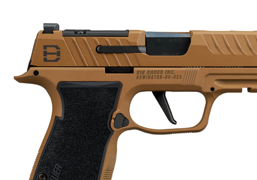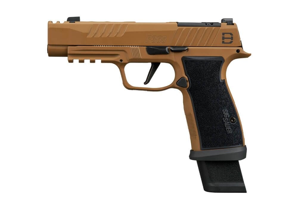 The SIG Sauer® P365 DH3 AXG in 9×19 was developed in collaboration with professional shooter Daniel Horner and builds upon the proven P365 AXG platform. It combines a 3.7-inch barrel with an integrated slide expansion chamber designed to reduce muzzle rise and improve control during rapid fire. The metal AXG (Alloy XSeries Grip) module in Coyote Cerakote provides enhanced rigidity and balance while maintaining the compact dimensions characteristic of the P365 series. The DH3 AXG blends competition-oriented features with a configuration suitable for duty and defensive applications.