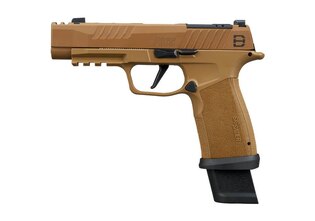 The slide is optics-ready using the SIG-LOC compact footprint. The pistol comes factory-equipped with a ROMEO-X red dot sight for rapid target acquisition in dynamic shooting scenarios. XRAY3 day/night sights remain in place to allow co-witness capability across various lighting conditions.