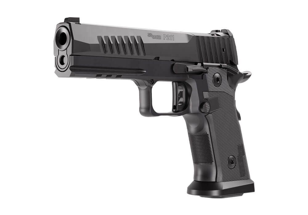 The SIG Sauer® P211 GT5 in 9×19 mm is configured for both duty use and competitive shooting. It combines a 5-inch bull barrel with a classic slide profile and the SIG-LOC PRO optics interface, factory-equipped with the ROMEO-X red dot sight. A steel frame, aluminum grip module with G10 grip panels, and fully ambidextrous controls provide a balanced and performance-oriented platform. The GT5 is engineered for predictable recoil characteristics and long-term durability.