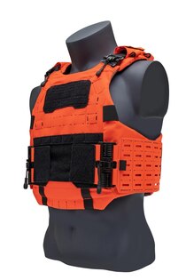 Adjustable shoulder straps and cummerbund provide precise fitment, ensuring stability even under full load. Ballistic shoulder pads are included in the standard configuration to enhance comfort during prolonged wear. A reinforced drag handle enables emergency extraction of a casualty. This variant incorporates enlarged rear hook-and-loop identification panels for high-visibility markings, critical during rescue operations.