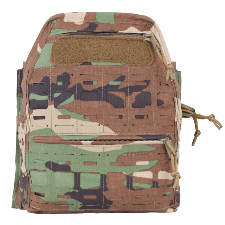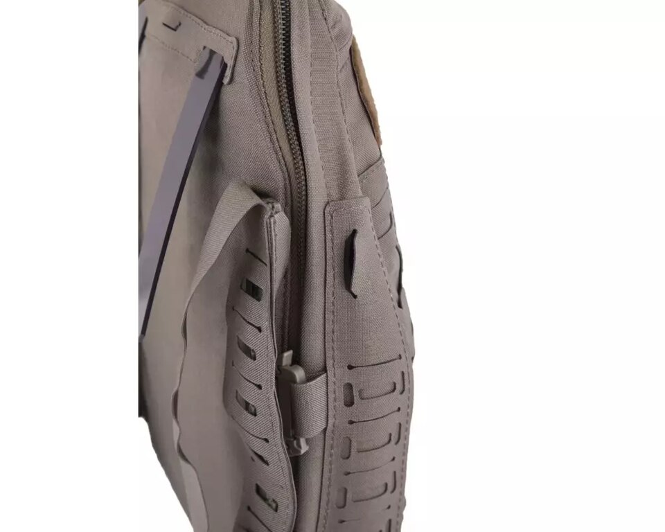 On the front of the backpack there are two zip pockets with extended pullers for better control in gloves. In addition, the entire front and sides are covered with a laser-cut MOLLE binding to which additional pouches and accessories can be attached. The back is reinforced with a polymer structure. Some of the plastic reinforcements can be interwoven with the MOLLE system to improve the attachment to the plate carrier.