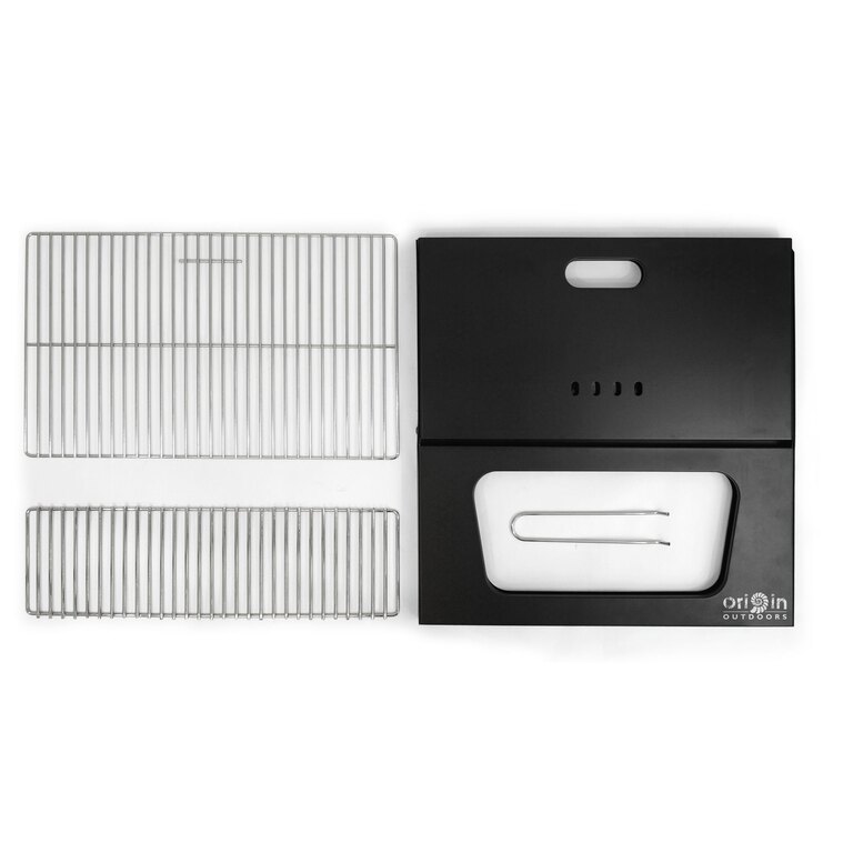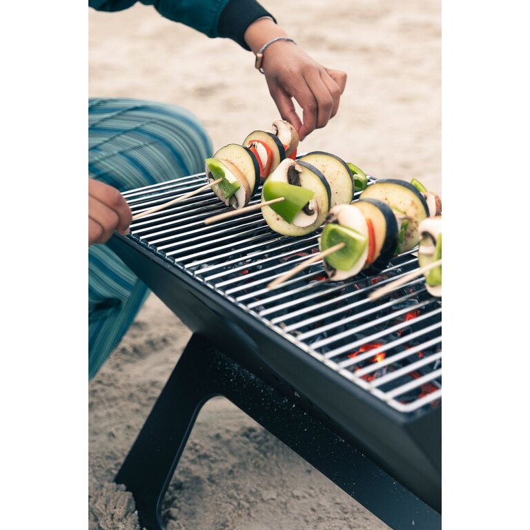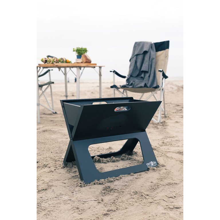 The Origin Outdoors® folding BBQ grill features a large cooking surface, allowing you to prepare multiple servings at once. Designed for camping, garden use, and extended outdoor stays, it folds down easily after use and packs into a compact carrying case for convenient transport and storage.