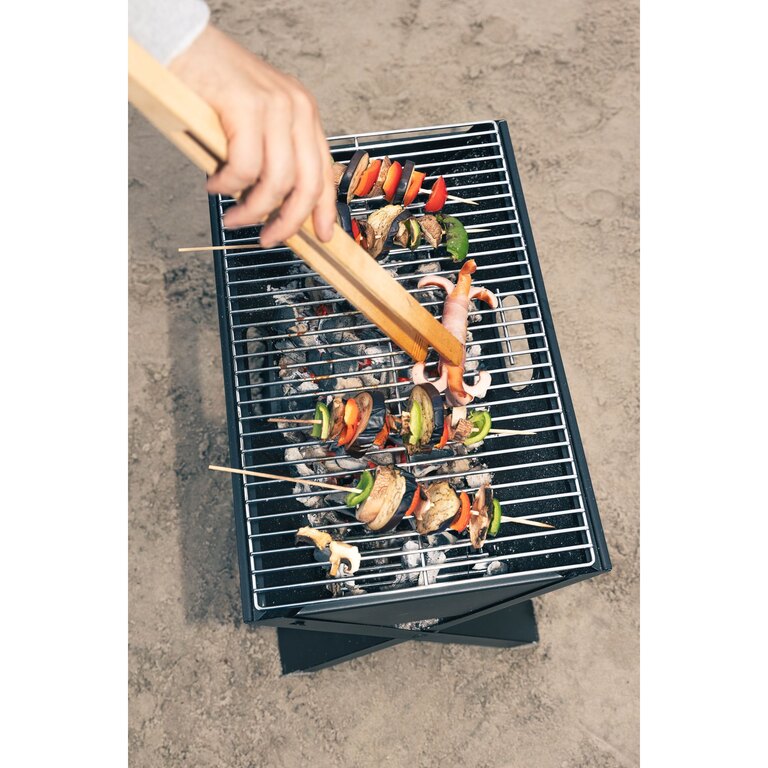 In addition to grilling, the unit can also be used as an open fire pit. This makes it ideal not only for cooking but also for evening gatherings outdoors, whether camping, at a cabin, or in the garden.