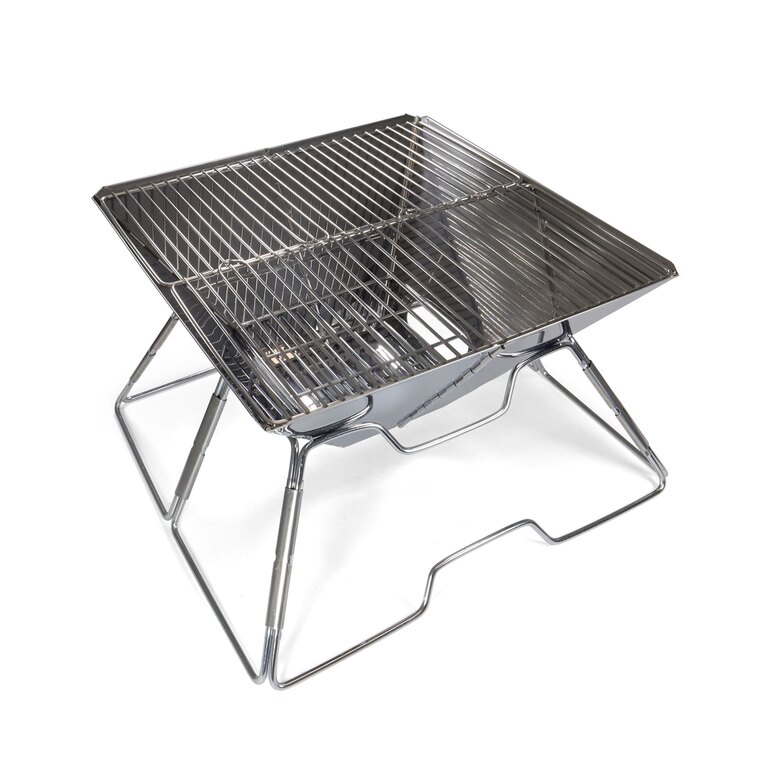The Origin Outdoors® Tetragon folding grill features a square design that provides a spacious cooking surface for preparing multiple servings at once. After use, it folds down into a compact, portable form for easy transport and storage. It is an ideal solution for camping, outdoor trips, and extended stays in nature.