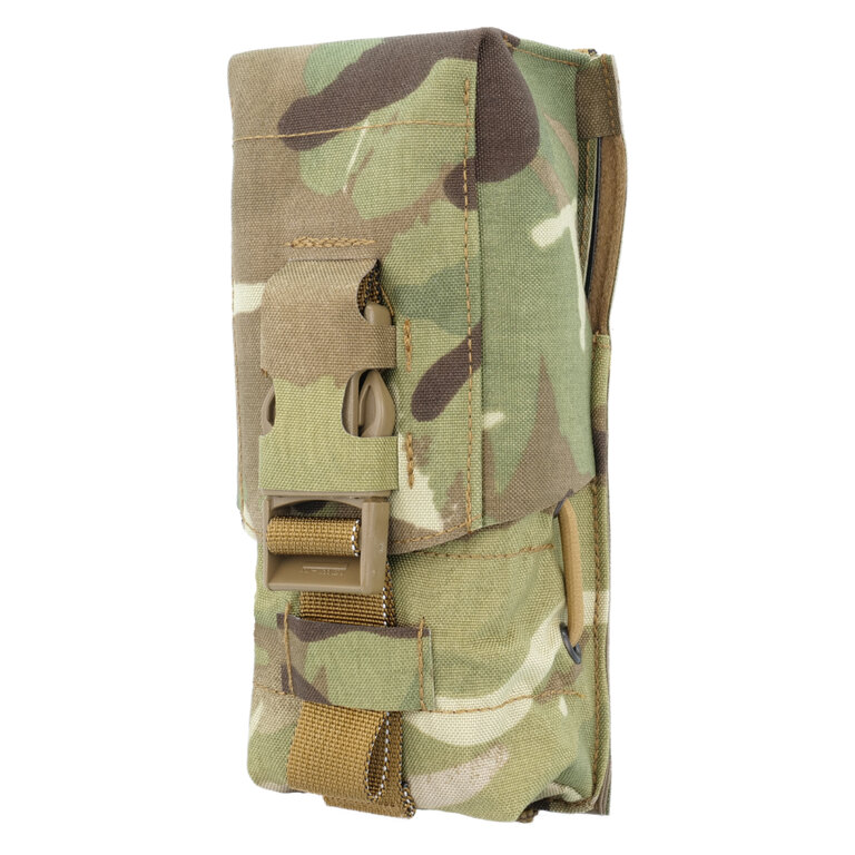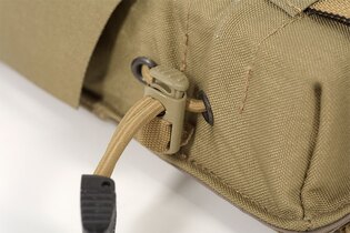 The rear is completed with modular binding, allowing you to attach it to any MOLLE/PALS compatible equipment.The pouch is made of durable materials, so it can withstand difficult combat conditions.The bottom is completed with a water outlet opening.