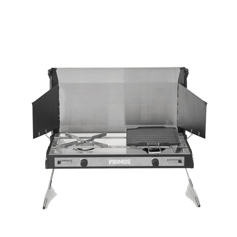 | Other specifications | Very compact two-plate camping cooker Low-profile, lightweight and packable Lid and side parts form wind shield High performance and even flame with gradual regulation Easy to clean Easy and safe transport - handle locks the cooker and the spring locking mechanism holds the regulator in place Piezo burners ignition Independent operation of both burners Power: 3 000 W Fuel: mixed propane - butane - isobutane Fuel consumption: 250 g / h Time to bring water to boil (regular pot): 4,2 min Use only with Primus® 2206, 2202 and 2207 cartridges Outdoor use only Developed in Sweden, made in Europe |