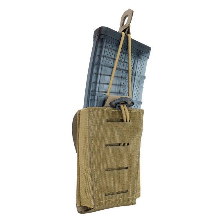If necessary, you can use the pouch as a "FAST" pouch. Just remove removable securing cords.The magazine is then no problem to pull out in a few seconds, which gives you greater shooting efficiency.But if you know you're in for a tough move, you can reattach the safety cords and secure the mag against falling out.Universal and very resistant pouch to any situation.