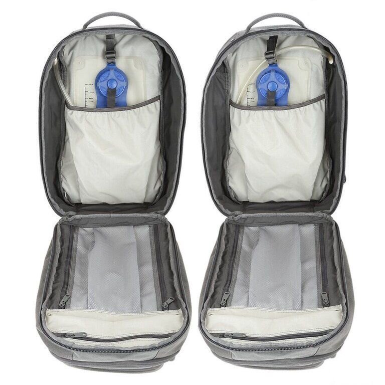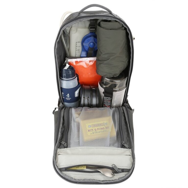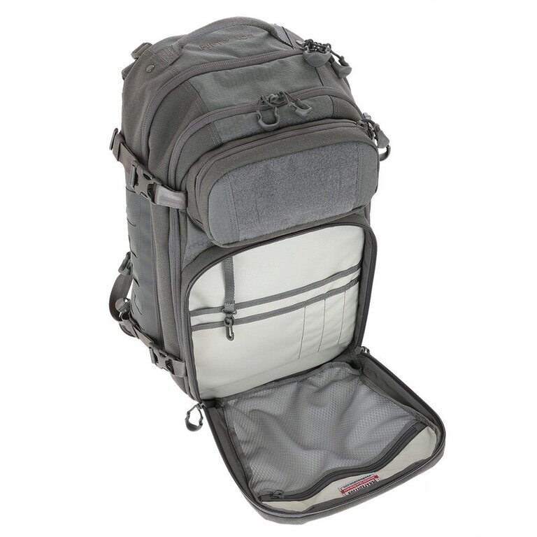 The main compartment can be easily opened and is accessible around its entire circumference, which allows for no long searching in between things. Main compartment also has hydration reservoir pocket and dual hydration ports. In addition to this it also contains number of zippered pockets for perfect organization of your items. The interior of second main compartment (mid compartment) is loop lined so you can adjust it to your individual needs and attach for example pistol holsters, pouches or other pockets. For additional protection, lockable main zippers also come handy.