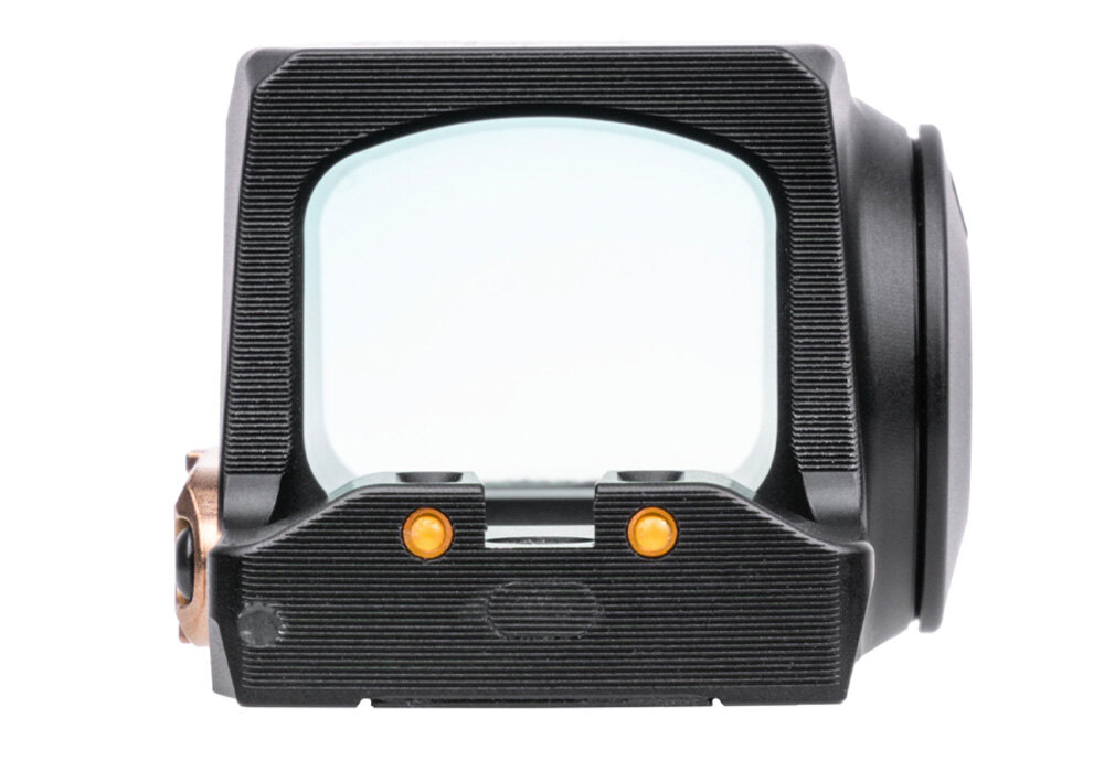 The sight features a CNC-machined 7075-T6 aluminum housing, the same high-strength alloy used in military firearms. A beryllium-copper flexure system ensures precise, repeatable elevation and windage adjustments. The open-emitter reflex design uses an aspheric, distortion-free lens for excellent clarity even at steep viewing angles.