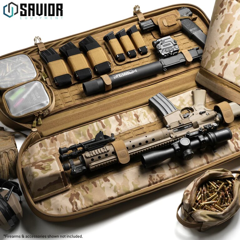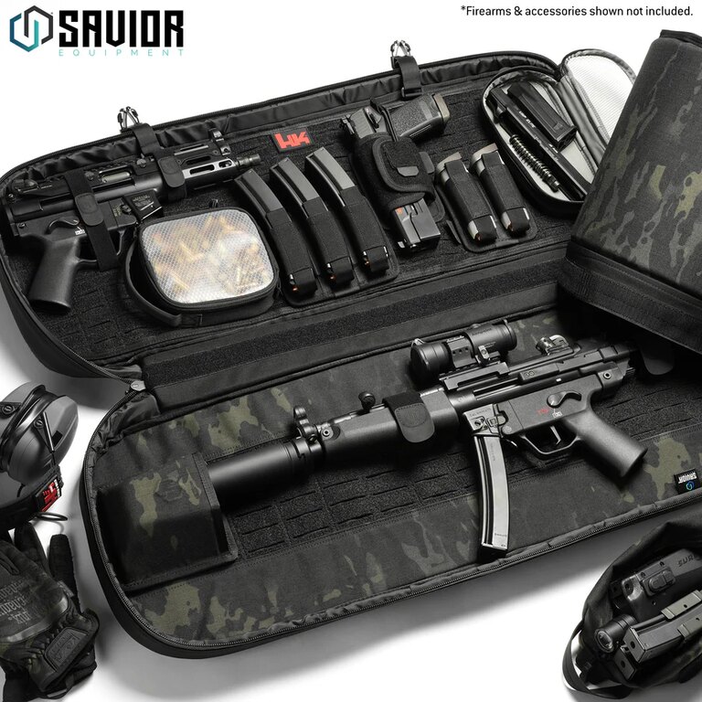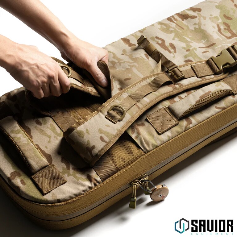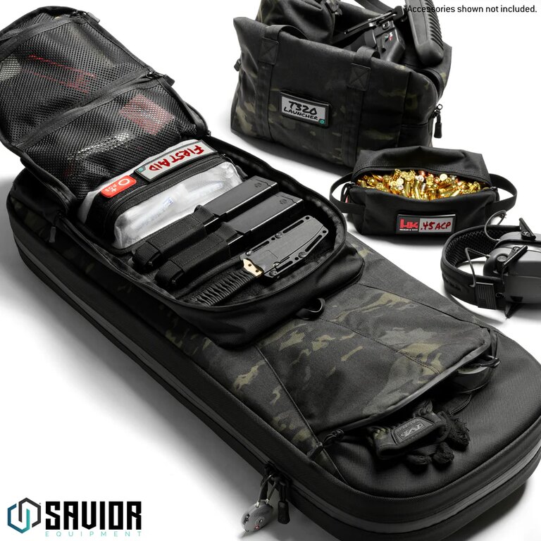 The case opens completely flat, so handling the weapon is quick and unobstructed. External pockets with administrative organization and mesh zippered pockets accommodate small equipment and shooting accessories. Both the top and bottom pockets are equipped with MOLLE panels that remain subtle but functional.