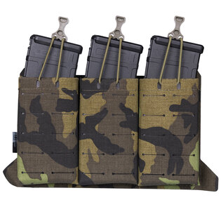 Adjustable straps with pull-tab hold the magazines tight and grommets on the bottom of the pouch allows for drainage. The front pouch has two rows of laser cut slots compatible with MOLLE/PALS. This allows attachment of additional pouch or pocket.