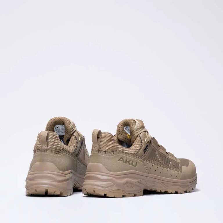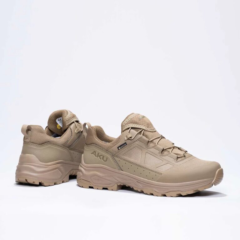 With the AKU Tactical Sentinel Low GTX shoes, you can stay dry and comfortable under all circumstances. Regardless of the current weather outside, you can rely on these shoes – whether you are a civilian or a professional. Thanks to its anatomical shape, the footwear wraps around the foot to provide stability and supports the wearer when walking even in very rough terrain.