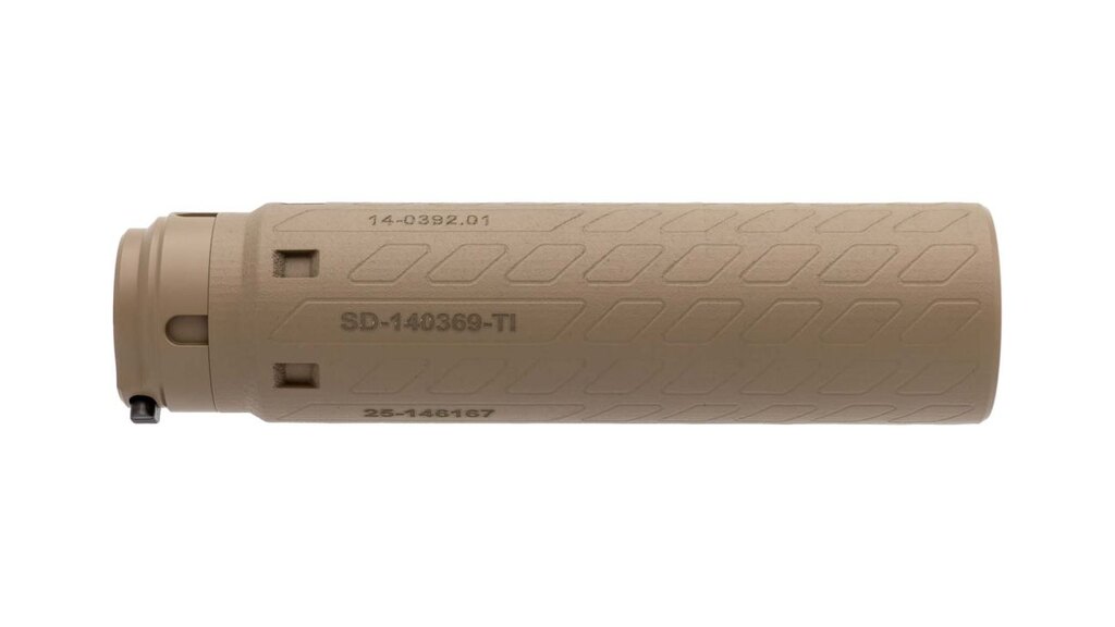 The internal geometry is designed to reduce muzzle report and visible flash. The suppressor maintains functional consistency under sustained firing conditions.