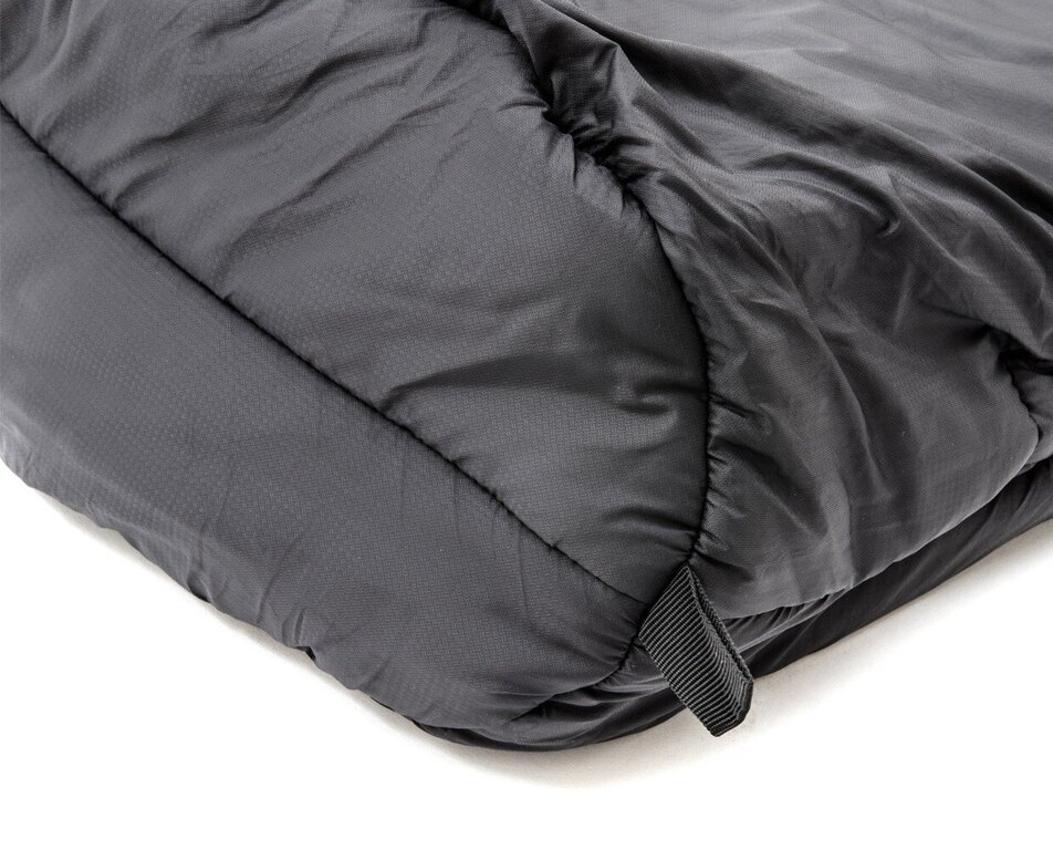 We must also mention the fact that this sleeping bag does not have a stitched construction, which reduces the risk of cold spots. Your body heat will also escape less thanks to the insulated shoulder partition. In addition, the sleeping bag has increased resistance to moisture. But if you do get wet, thanks to the loops in the legs of the sleeping bag, you can quickly and easily ventilate and dry it.