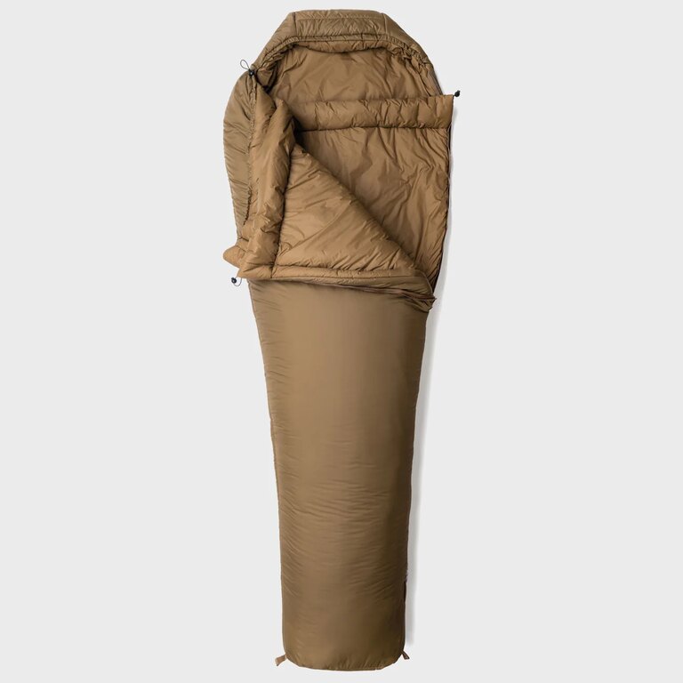 | Other specifications | Left twoway zipper YKK® with internal insulated baffle, with antisnag tape Internal reinforcement in foot area for sleeping with boots on (black, olive green and khaki variants) Adjustable drawstring hood External hanging tabs on bottom for easy airing and drying Nato stock number (NSN): 8465-99-314-3139 |