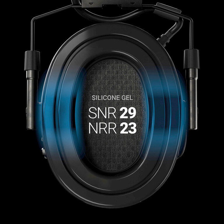 The silicone gel adapts to the shape of the head and evenly distributes pressure around the ears. The ear cushions seal better even when wearing shooting or safety glasses, increasing comfort during long-term use. Comfort remains stable even throughout a full day’s activities.