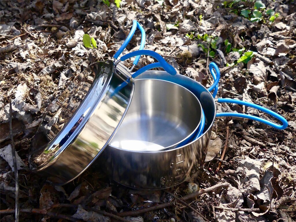 Stainless steel 3-piece camping cookware ALB MAKALU is made of high-quality chrome-nickel stainless steel CrNi 18/10.