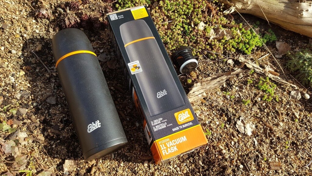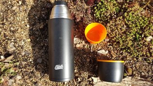 The Esbit VF1000ML vacuum flask is a double-walled bottle. The flask has a black powder coating, which not only looks nice and modern, but is also non-slip. The flask thus offers a secure and safe grip even in gloves. It is light and compact. Its capacity is sufficient for longer or accompanied trips. After a day of dinner or another day at breakfast, the content is still hot.