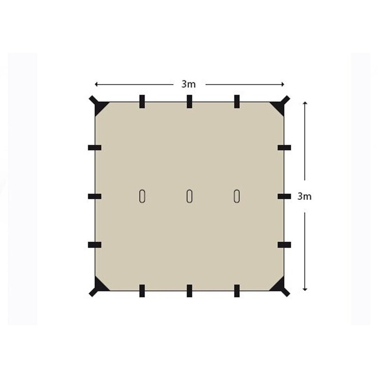 | Parts of delivery | Tarp Compression bag with drawstring Zipped cover with netting and 9 attachment straps Tensioning cords and anchor pins not included |
