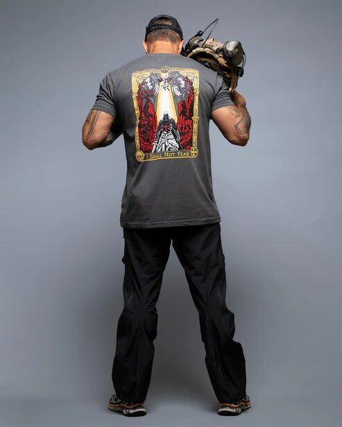 Wear it as a weapon against doubt. This T-shirt is a reminder that fear should not be your ruler. The No Fear T-shirt gives a voice to those who have already shed the shackles of doubt.