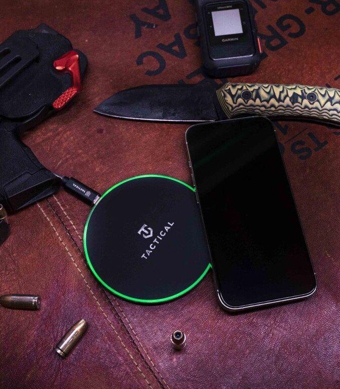 The Tactical Base Plug wireless charger has Qi certification, fast charging up to 15 W and a non-slip surface treatment. Simply place a compatible phone and you simply charge.