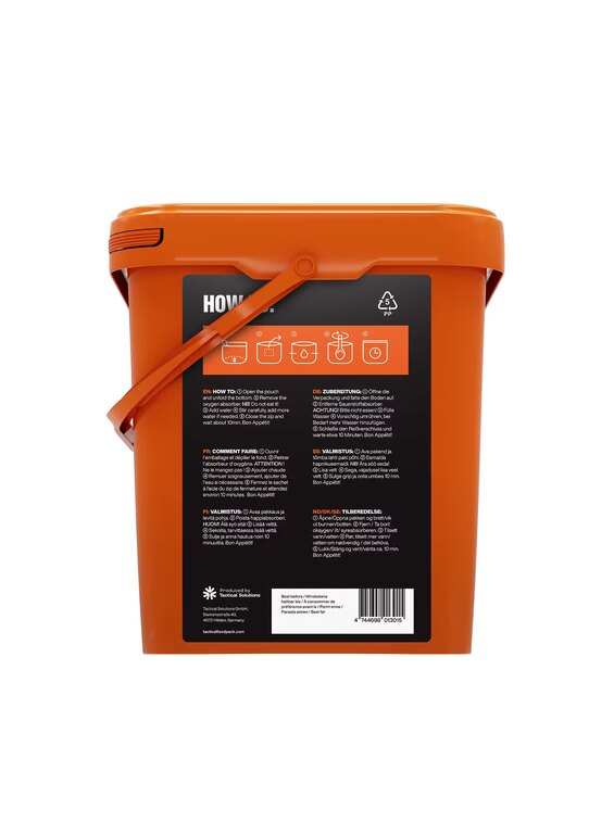 Complete Emergency Survival Kit: Tactical Foodpack Survival Pack Mike offers 21 hearty meals, 7 disposable showers and 2 Fire Pot heaters – all in a durable bucket with a shelf life of up to 8 years. Ideal for emergencies, expeditions and home preparation.