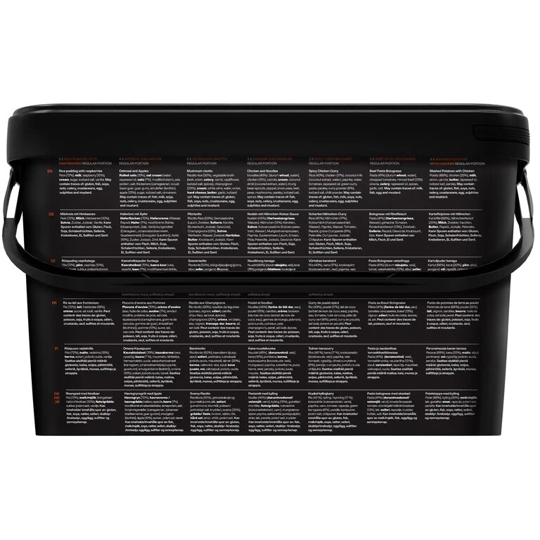 | Weight in detail | Net weight (meals without packaging): 2,210g Gross weight: 3,472g |