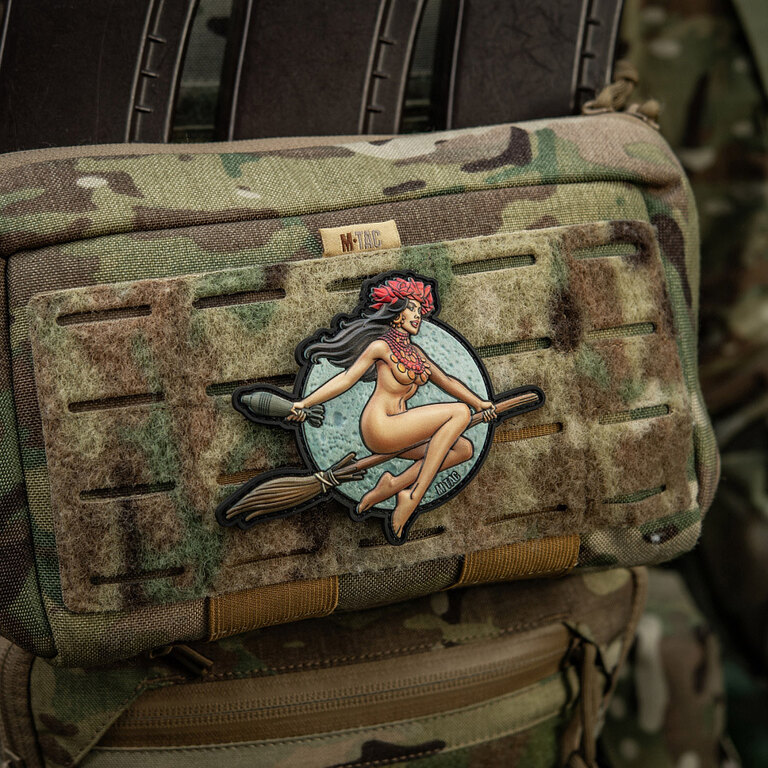 M-Tac continues its collection of motifs that combine aesthetics, exaggeration, and combat symbolism. This version with a witch is among those with a story and a distinctive expression.