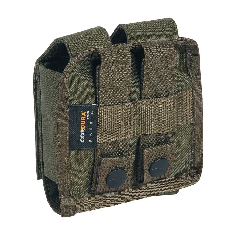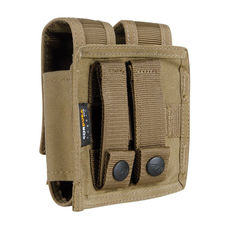 Pouzdro na 2 granáty TT MIL POUCH 2X40MM. Umožní vám spolehlivě granáty uložit a mít je neustále po ruce. Granáty jsou v pouzdře upevněny klapkou s Velcrem. Manipulace s puzdrem je tak velice snadná a rychlá. Oddělené kapsy usnadňují manipulaci. Můžete jeden granát vytáhnout a druhý zůstane upevněn. Také se tím předchází jejich vzájemnému poškození. Při rychlém otevření pouzdra se obsah vysune. Je kompatibilní s granáty do velikosti 40 mm. A může se jednat o granáty výbušné, kouřové a další.