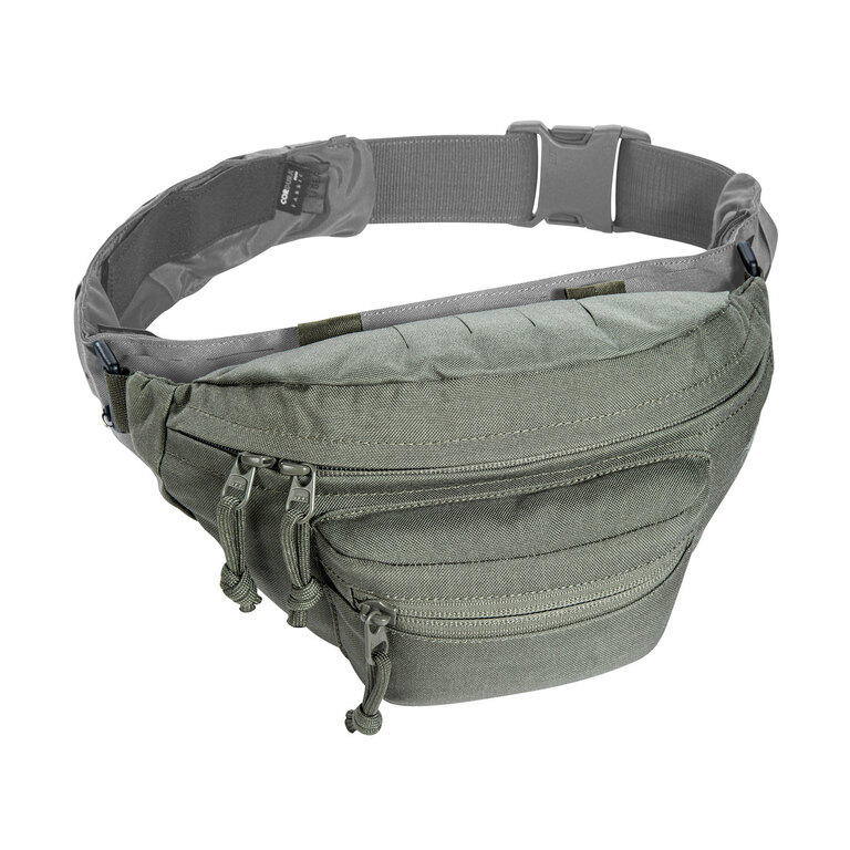 You can attach the hip bag to the waist with the help of a hip strap, which fastens with a strong buckle. Thanks to the fact that the length of the strap is adjustable, you don't have to worry about your hip bag falling off - you simply adjust the length of the strap. If necessary, it is also possible to completely detach the strap. The upper side of the hip bag is then equipped with MOLLE webbing, which enables the attachment of other equipment (for example, smaller pockets).