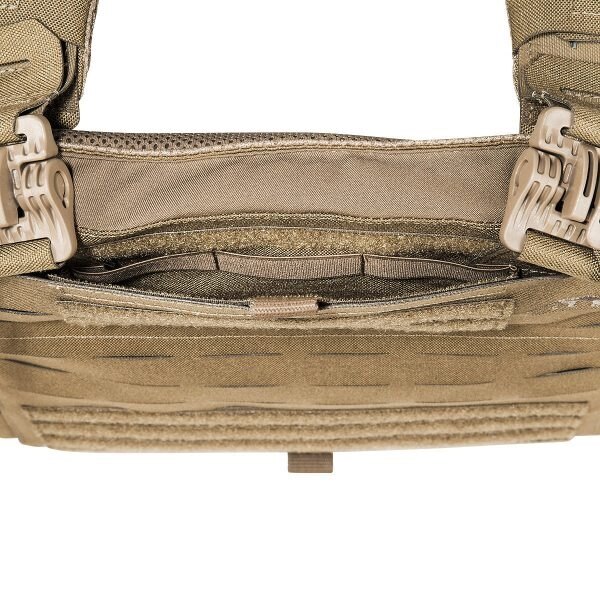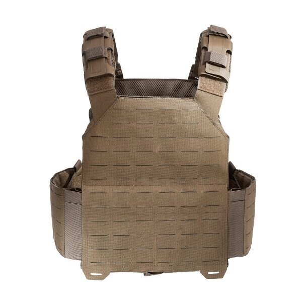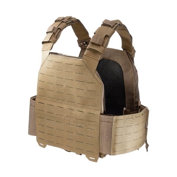 Lightweight QR plate carrier from Tasmanian Tiger in a version with laser cut slits. Thanks to the technology used, it has a smooth and clean appearance. The size is designed for ballistic plates of 30 cm x 25 cm size. It is equipped with a quick release system using ROC buckles.