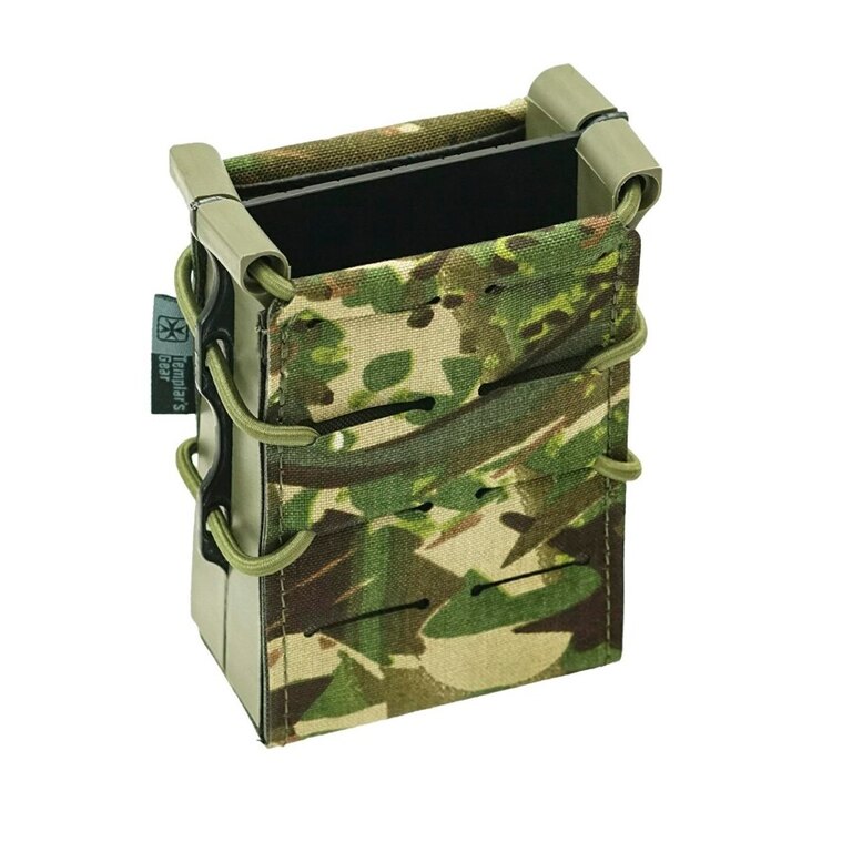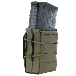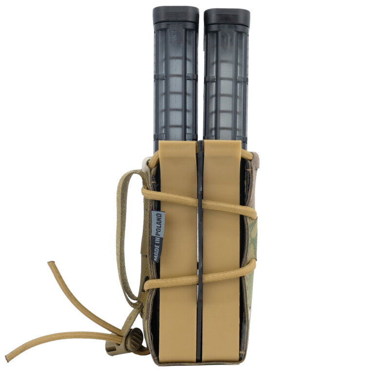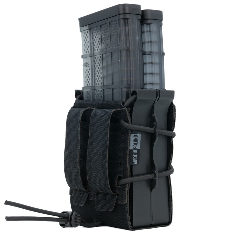 A double fast mag pouch by Templar's Gear, designed for virtually any rifle magazines such as AK / AR15 / M4 / M16 etc. A simple double-chamber construction is made of a highly durable Cordura laminate with IRR coating and kydex frame. Its sophisticated design and high quality materials used ensure mechanical sturdiness and comfort of use. This CQB pouch allows for a quick access to your mags and makes your reloading much faster. A very important feature of the pouch is its regulated retention system which keeps the magazines safely in place. This system consists of an adjustable elastic draw-string and anti-slip lining inside. The front features two rows of laser-cut MOLLE compatible slots to attach other equipment or pouches. The pouch can be attached to the tactical vest, backpack or belt using two MOLLE compatible straps.